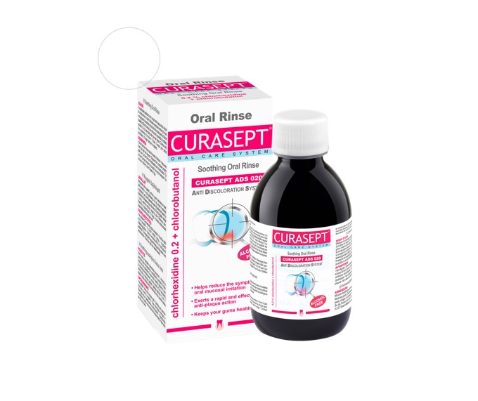 Содержит хлоргексидин 0,20% + система ADS+Хлорбутанол. Оказывает местное успокаивающее действие на слизистую, путем блокировки передачи боли. Оказывает мощное бактерицидное и противоналетное действие.